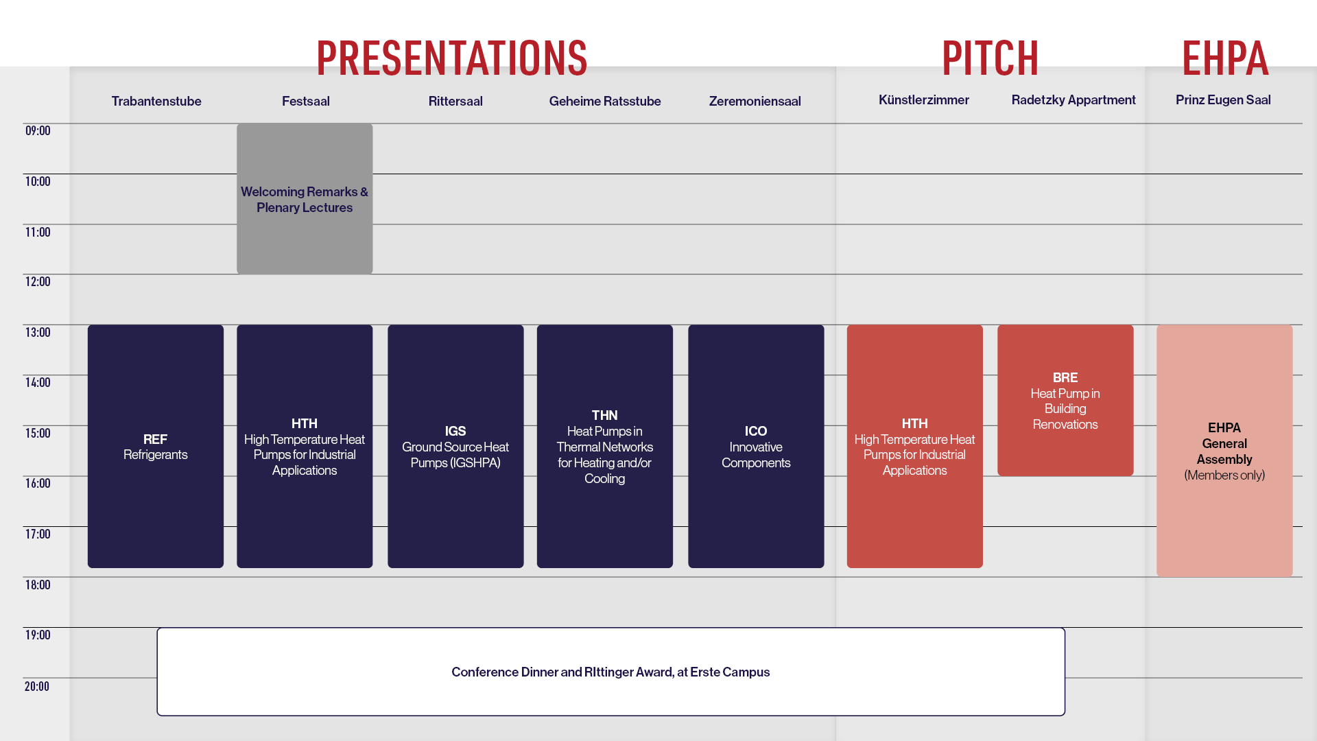 In the afternoon the program starts with scientific and applied technical presentations, accompanied by the exhibition. The EHPA general assembly will take place at the same time. The day will conclude in the evening with the conference dinner and the Rittinger award ceremony.